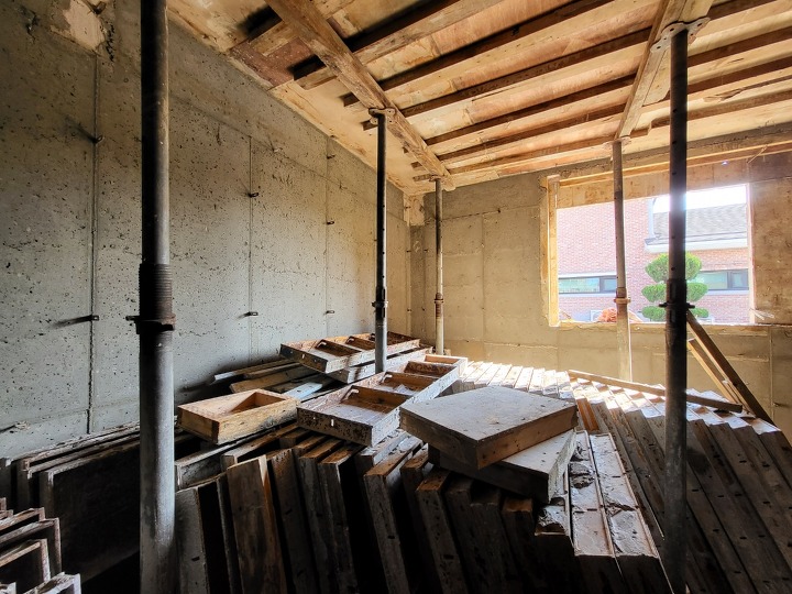 일 시작할때는 철골자재라던지 석고보드 텍스 이런것들 층마다 올려야 하니깐 사다리차가 오는데